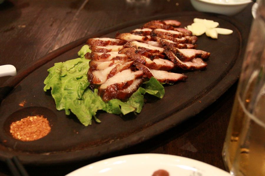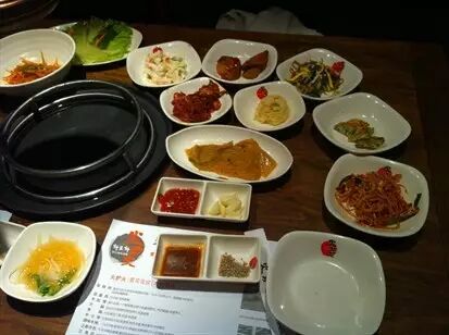 这家是韩式烧烤专门店,刚点完菜就被送的小菜给震住了,摆了一桌子,还可以续碟,喜欢土豆泥,南瓜羹也超级好喝。烤肉的肉质确实不错,价格在那儿摆着呢,名字挺有意思,什么流星、土星之类。赞一下流星肉,纹理漂亮,烤熟后非常香。人少的话可以点套餐,量足够吃的。服务也挺好,全程帮客人烧烤。难怪生意红火,天天排队。