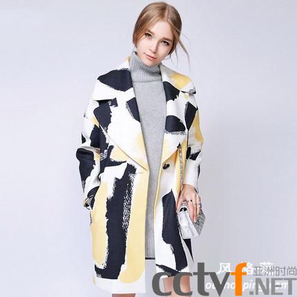 08. 引人注目的奶牛黑白黄印花色调,设计款式大牌又时尚。简单的流线型肩线让香肩看起来很圆润.超大翻领设计,大气时尚.面料质感优秀的同时图案也很摩登。