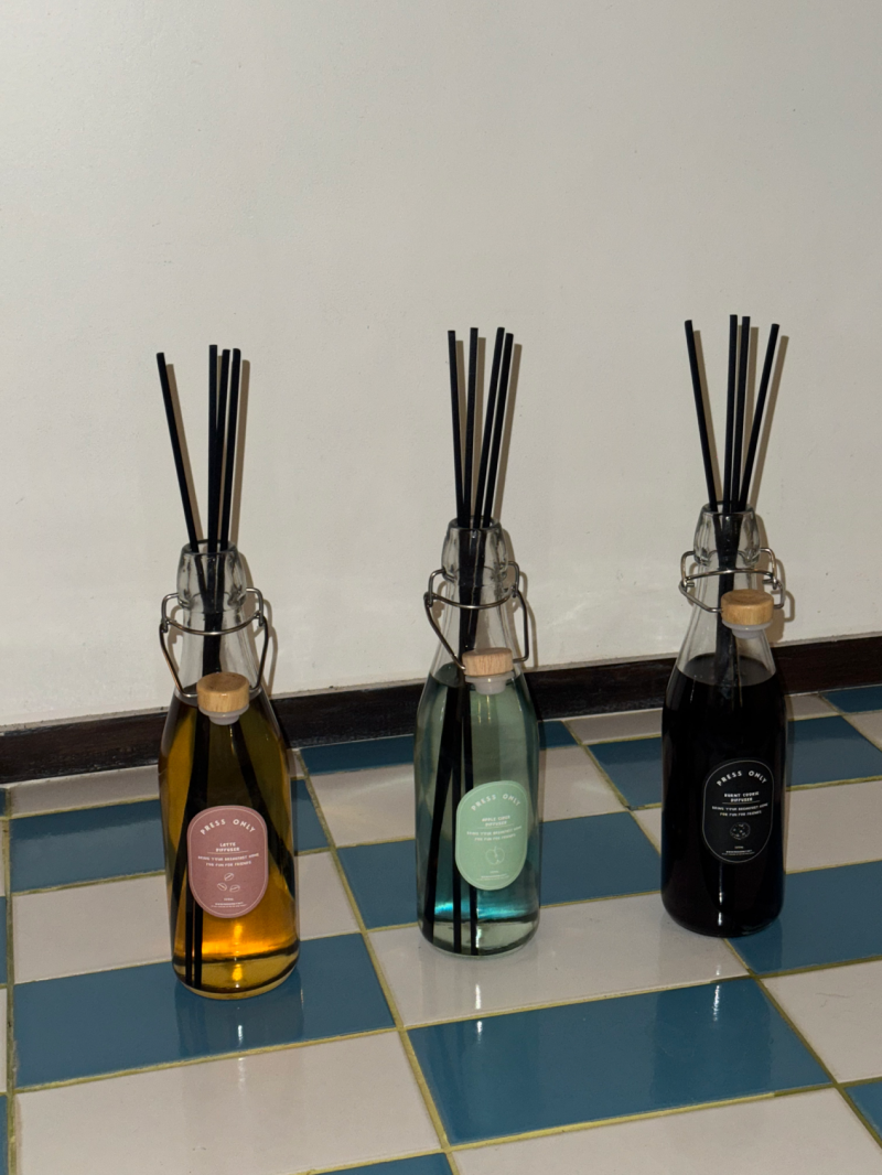 PRESS ONLY新品WINE BOTTLE DIFFUSERS,一次上新三种味道,在PRESS ONLY畅销款蜡烛香气的基础上,开发出全新的扩香产品, LATTE伴有记忆中太妃糖的味道,搭配咖啡的苦香,甜而不腻,香气恰到好处。APPLE CIDER是一款非常清新又带点冲劲儿的扩香产品,如同置身于青苹果乐园,就像在炎热的夏季,突然喝到一杯青苹果苏打,给人一种人沁人心脾的灵动之感。BURNT COOKIE相对前两款而言,更中性一些,烟熏的曲奇带有一点清冷的苦涩,带着小时候妈妈一不小心烘培过火的记忆,随着时间的流逝,慢慢散发出一些甜味。